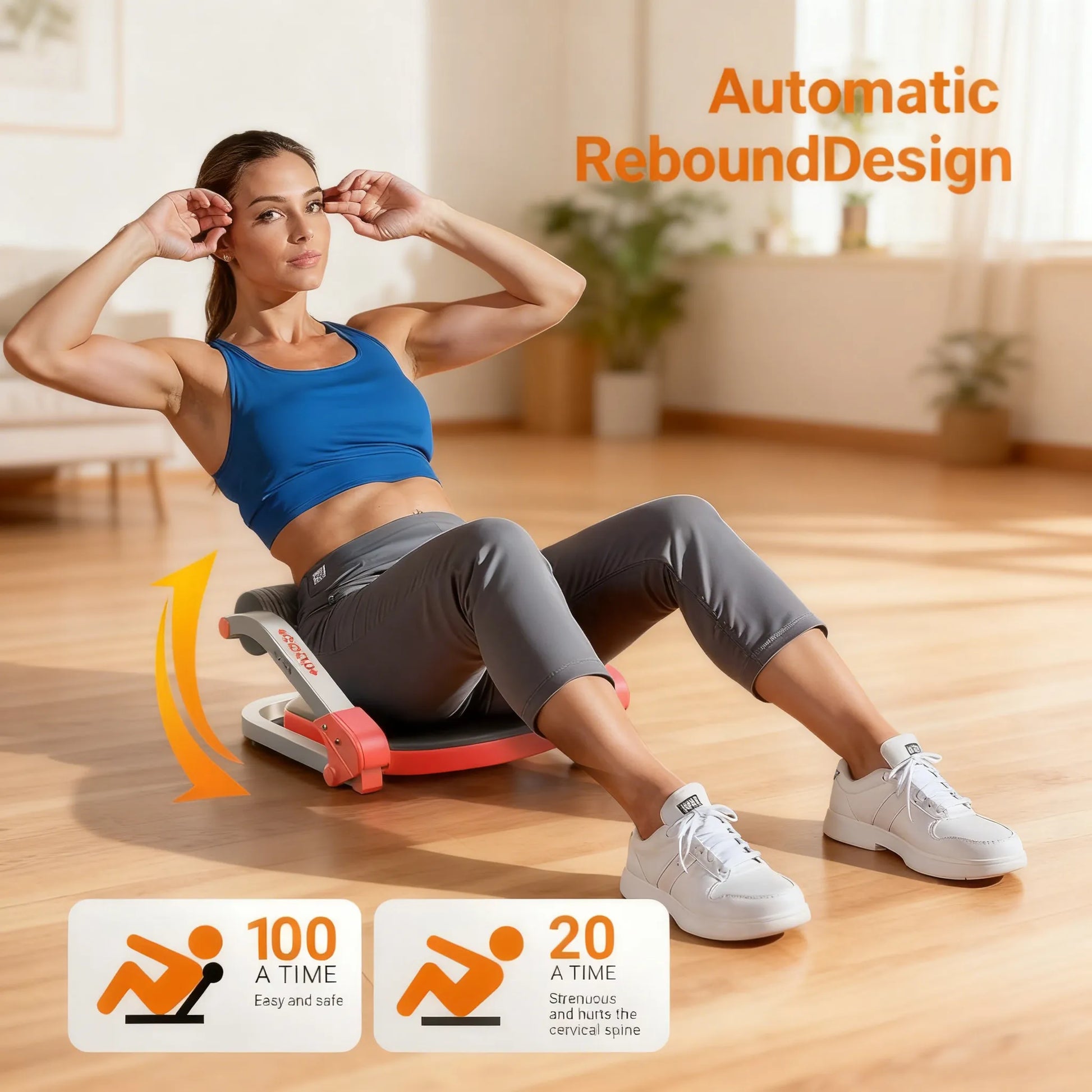 【Adjustable Resistance & Auto-Rebound】With 3 adjustable resistance levels and an auto-rebound feature, this sit-up machine adapts to different fitness levels, offering optimal results whether you're a beginner or an advanced user.