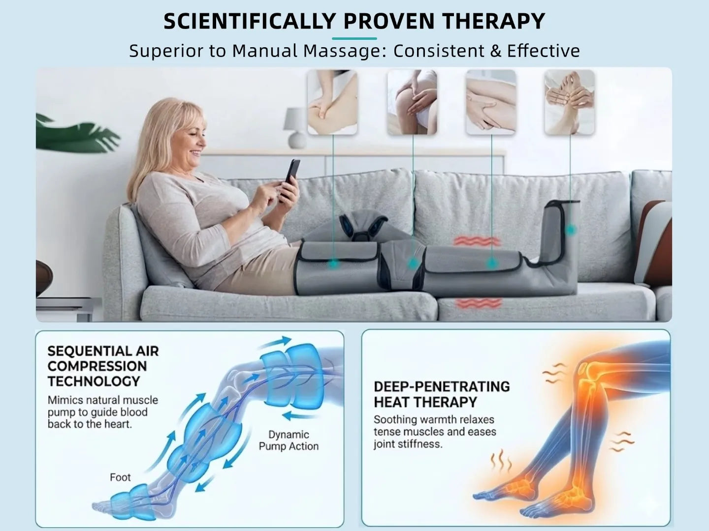 Experience the relief of a professional massage at home. Our Air Compression Technology simulates human hands to boost circulation, reduce edema, and soothe Restless Leg Syndrome (RLS)—without the expensive therapist bills.